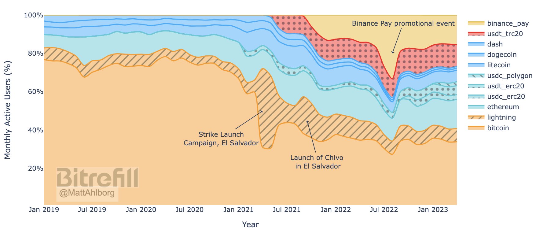 bitcoin is losing ground as a payment method not only on the darknet, but also for clearnet purchases according to Bitrefill's payment data tweet thread: