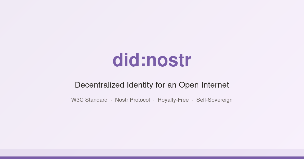 Decentralized identity for an open internet. A W3C DID method built on Nostr that delivers self-sovereign identity with global reach, open standards, and royalty-free licensing.