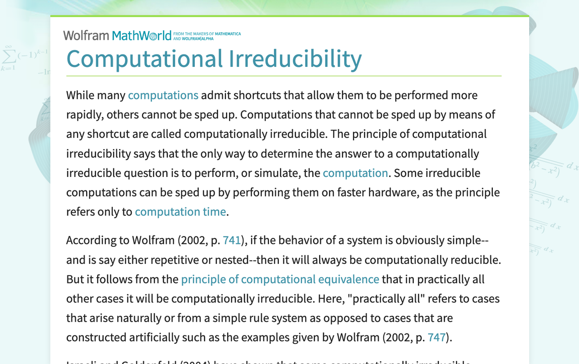 Computational Irreducibility -- from Wolfram MathWorld