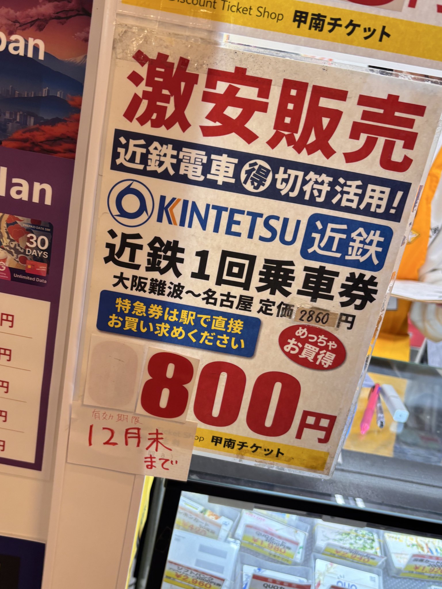 さらに下落して大阪-名古屋が800円に」