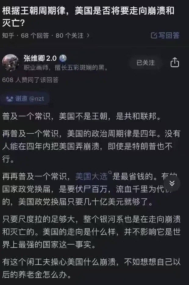 美国是否将要走向崩溃和灭亡?这是知乎网友的观点。