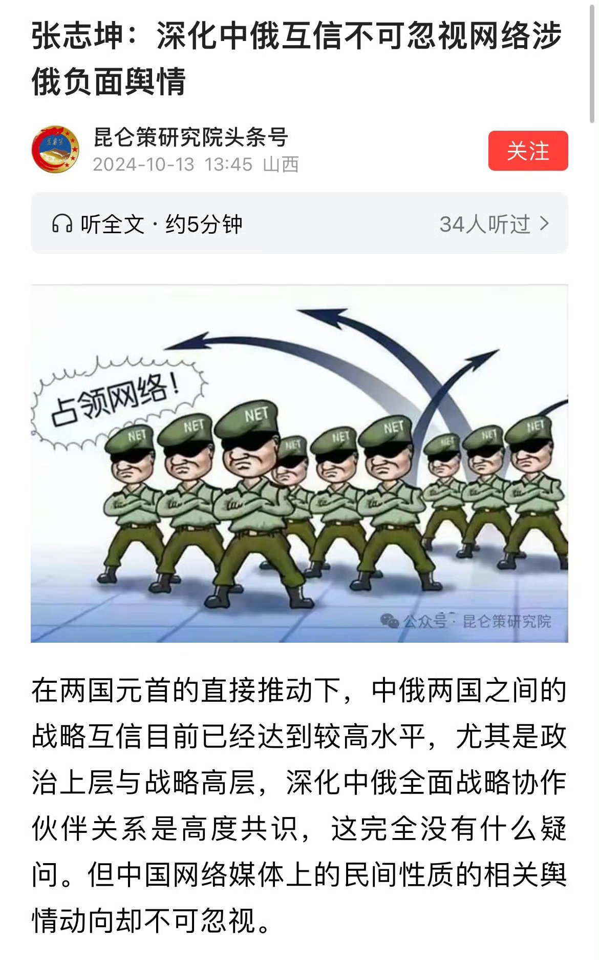 中国民间智库“昆仑策研究院”称:深化中俄互信,不可忽视网络涉俄负面舆情。这是哪儿来的俄子俄孙?