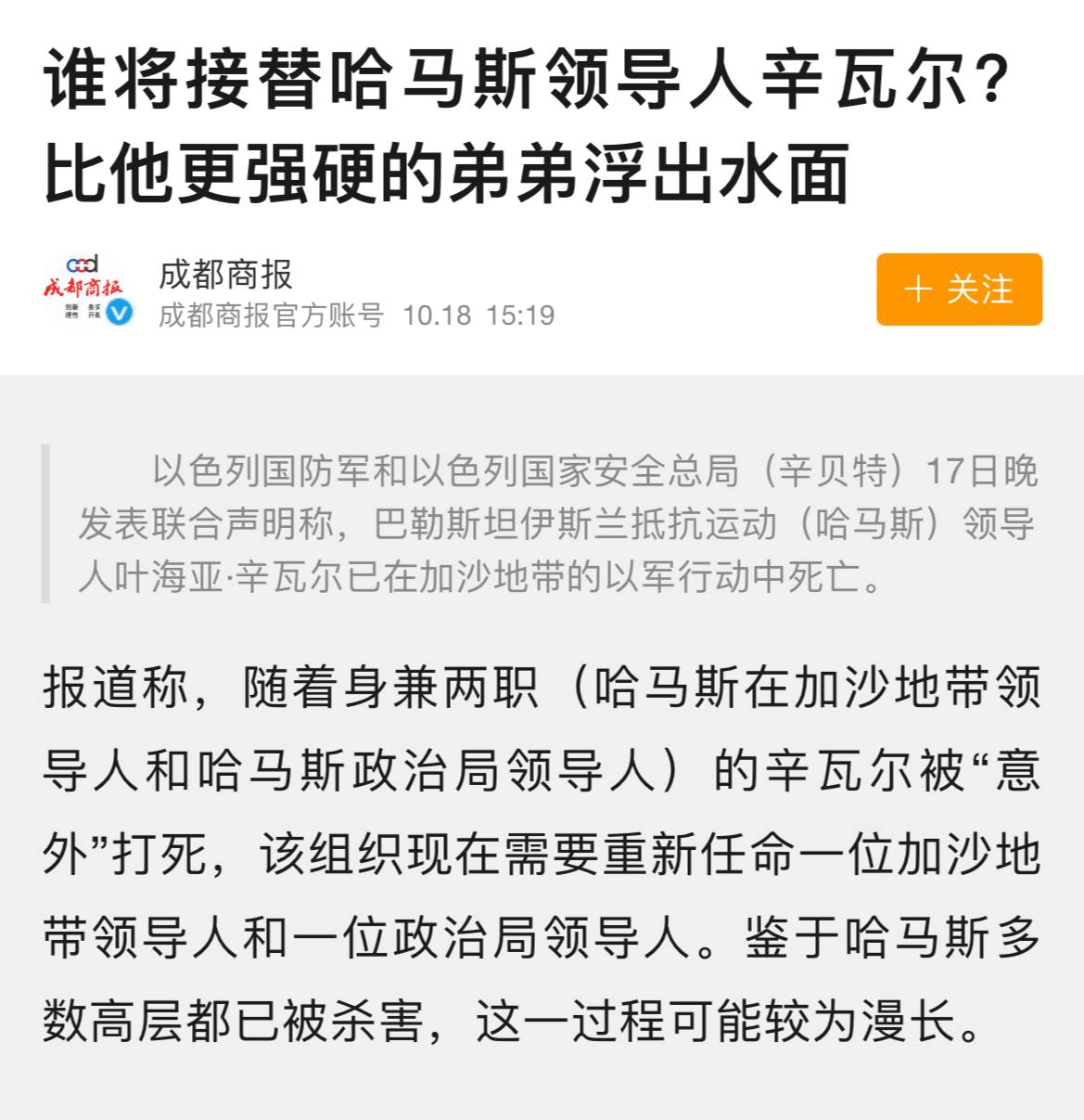 辛瓦尔:求求你们中国媒体给我们家留个活口吧,别乌鸦嘴了。