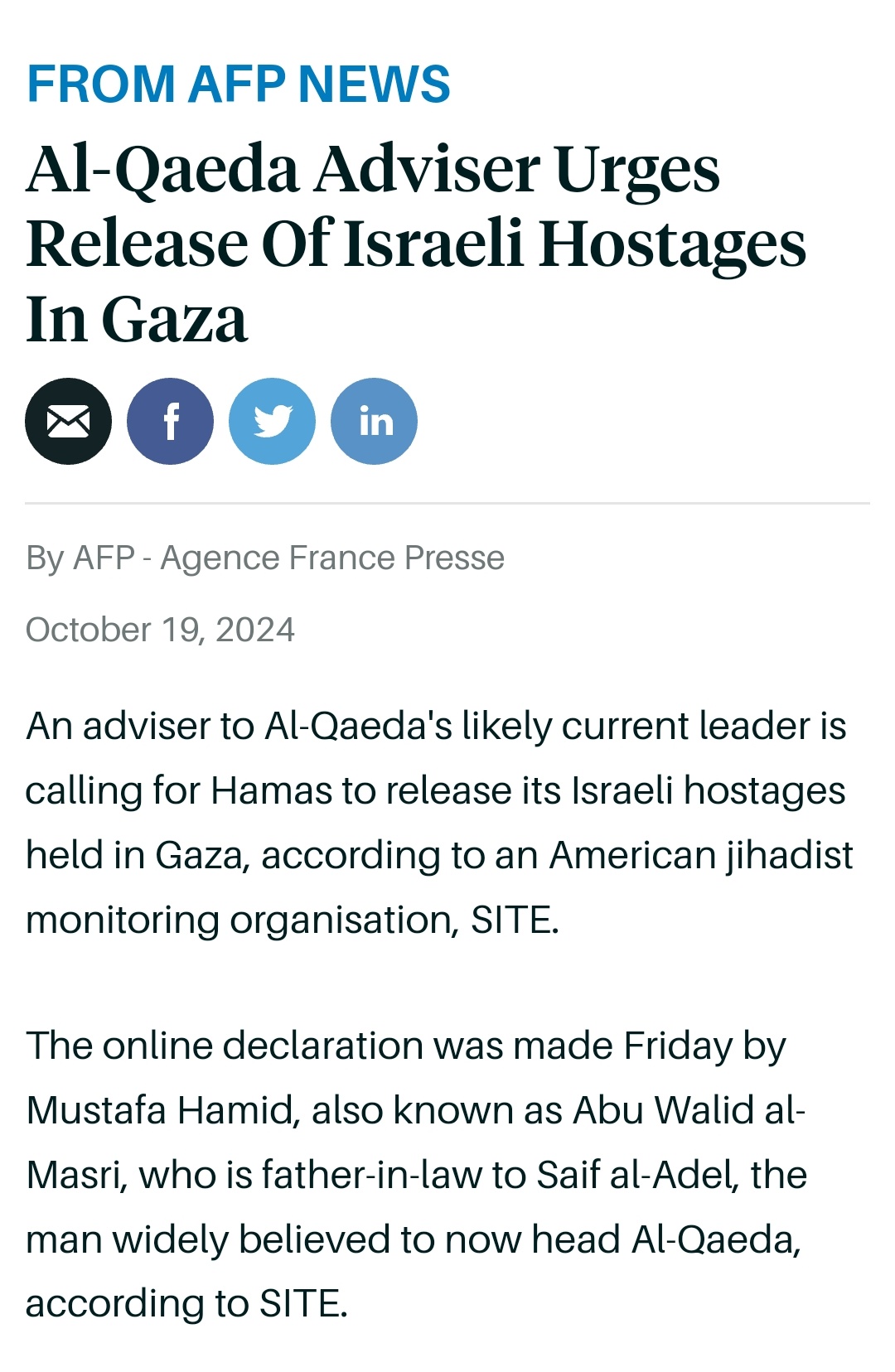 来自网友分享:近日,多家媒体报道称,基地组织的顾问呼吁哈马斯释放以色列人质以及归还遗体。看来有些不...