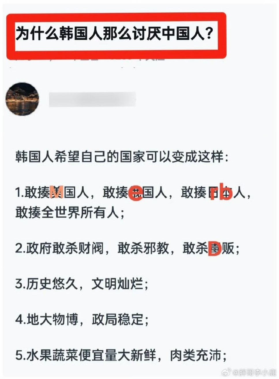 爱国者开始列举起了中国相较于韩国的“优势”🤪