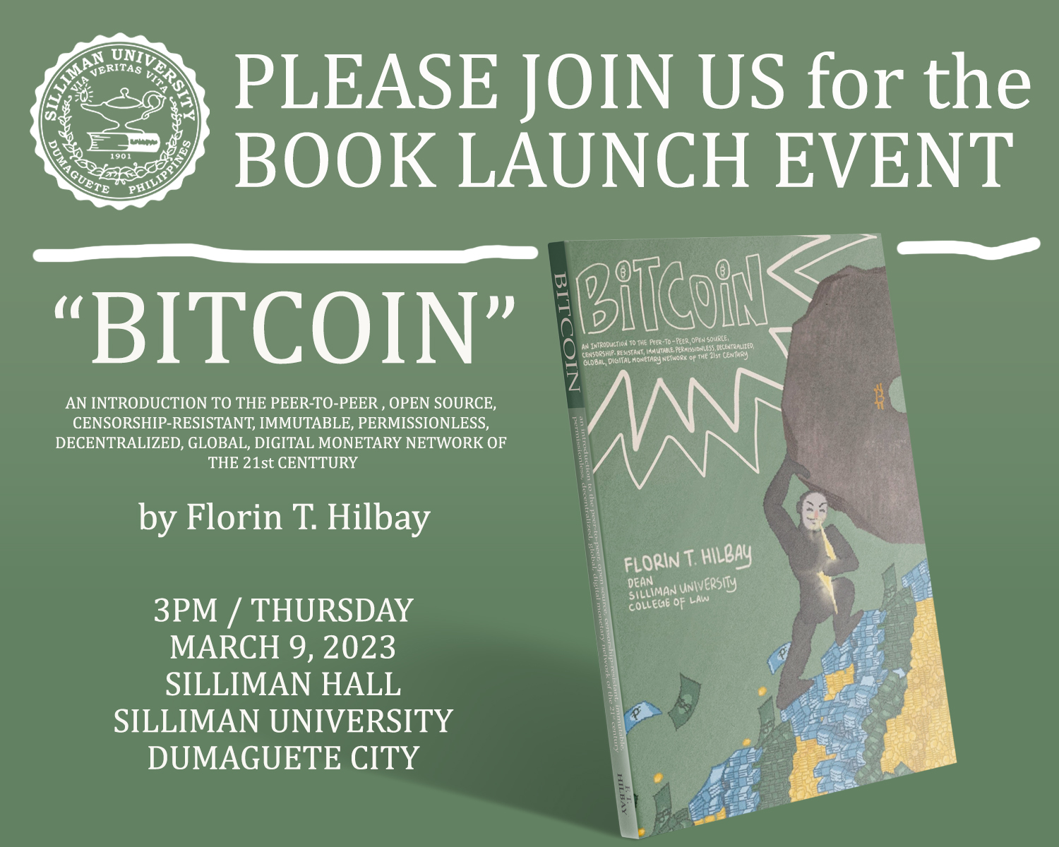 SU College of Law Dean Florin Hilbay will launch his book titled, “Bitcoin: An Introduction to the Peer-to-Peer, Open Source, Censorship-Resistan...