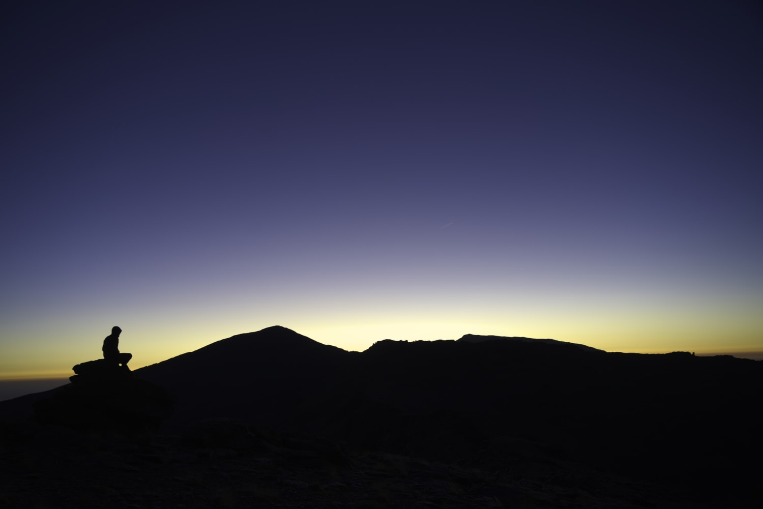 Beautiful morning today. Standing on the summit of Cerro los Machos (3329m) a few moments ago. In the background the peaks of Mulhacen and Alcazaba