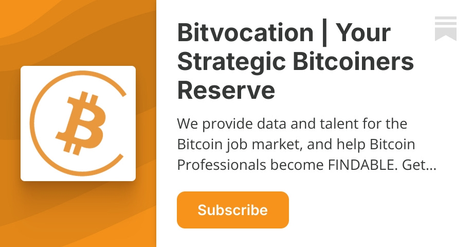 Another example: I used to fully work in traditional FIAT jobs and always got paid in FIAT. But I struggled to find a job in #Bitcoin, which was frustrating. Thatβs why I joined the idea behind #Bitvocation - using my tech skills to help build a platform where people can easily find their first job in Bitcoin.