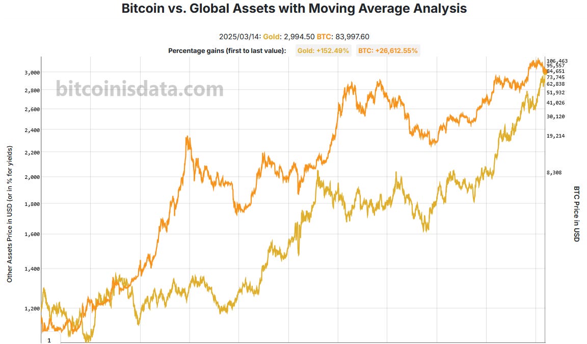 MVRV divides Bitcoin’s market capitalization (the current value in USD of all bitcoins in circulation) by its realized capitalization (all the USD that entered the Bitcoin network at the time of purchase). You can think of it as how many times, on average, BTC holders are “in profit.” For example, an MVRV of 2 means the average holder has doubled their value in USD terms, i.e., a 100% fiat gain.