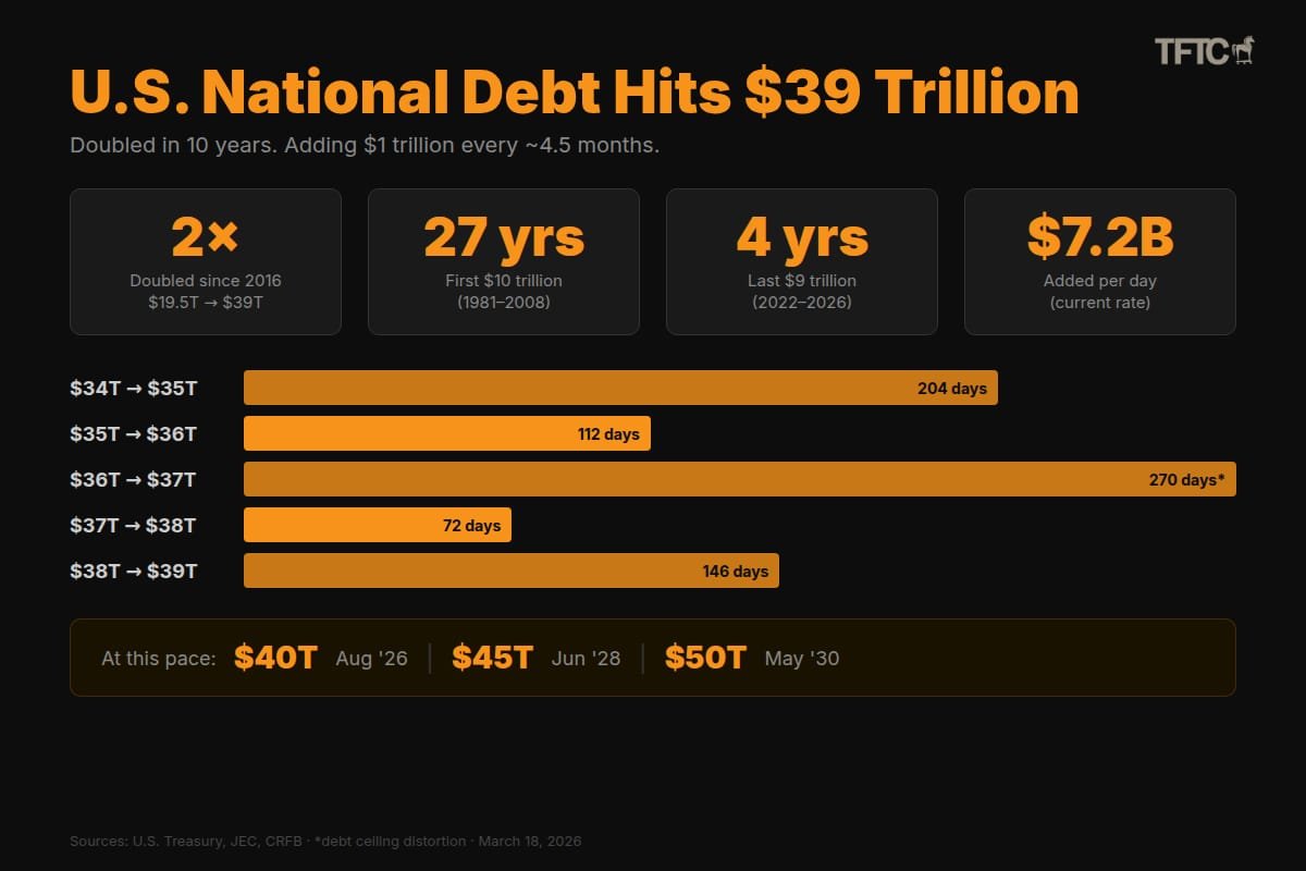 The US national debt just crossed $39 trillion.
