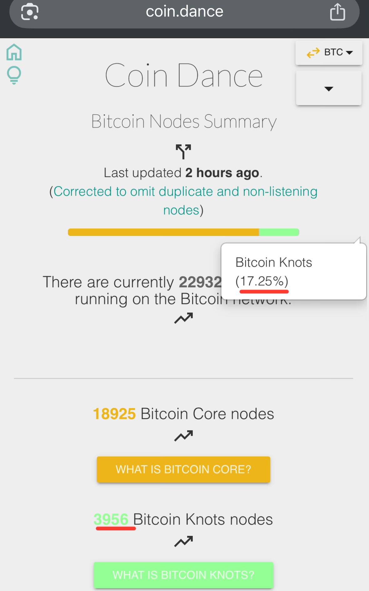 Bitcoin Knots at 17% and a quarter.