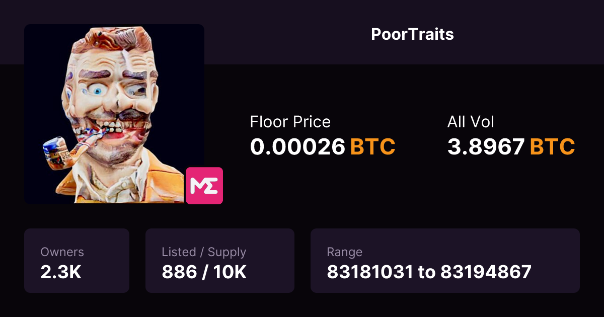 Inscriptions 83181031 to 83194867 | PoorTraits is a collection of evolving, bitcoin-reactive 3D busts that blend 3D scans, AI, and multiple coding ...