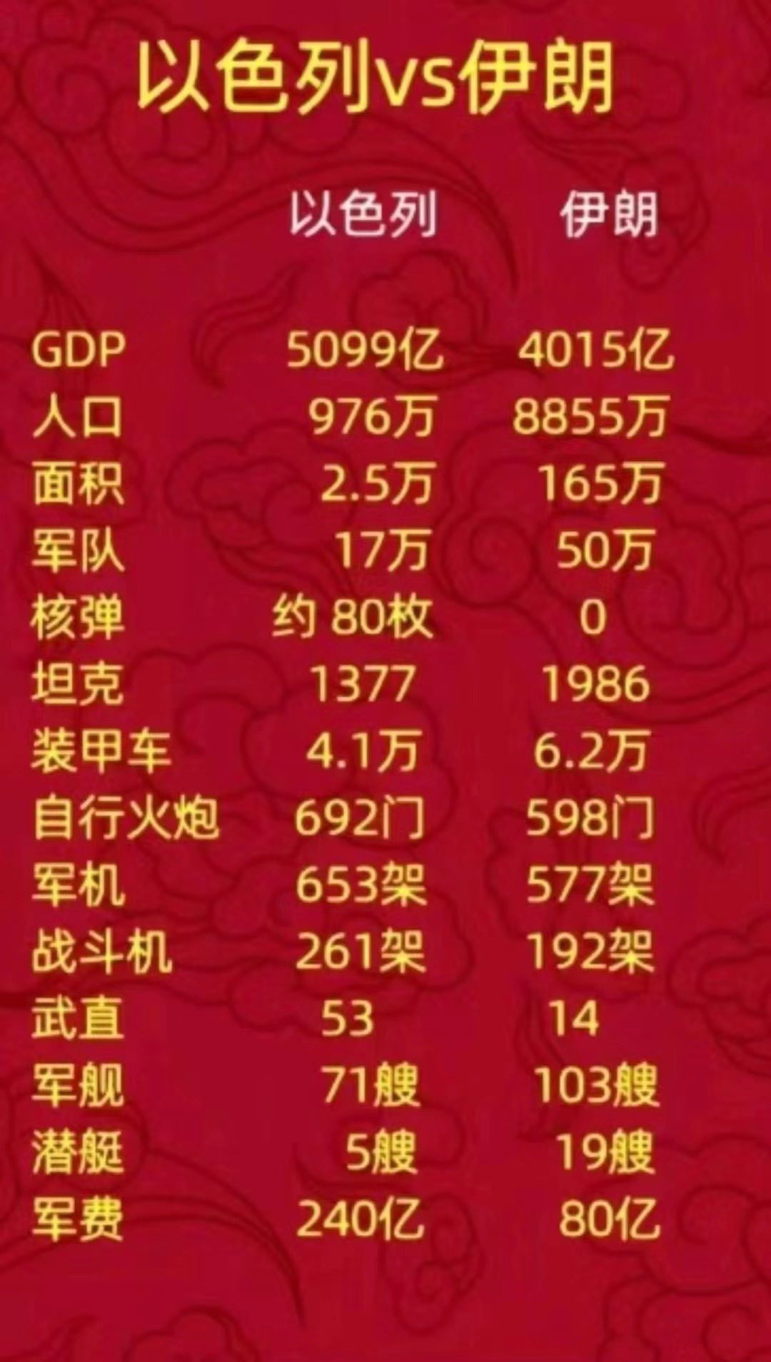 按照这个列表,伊朗有很多优势,但以色列的情报和智慧,精准打击,加上核弹,就可让伊朗瞬间灰飞烟灭😜