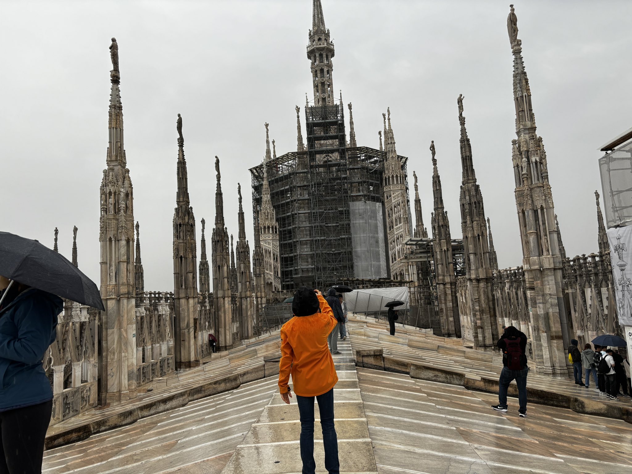 时隔九年,再次登顶米兰大教堂Duomo di Milano,面目全非。图一是现在,图二是九年前和图一相同位置,图一背后的建筑正在装修,顶部和楼层及教堂内所有的装饰雕塑都拆出,而且很多地方都在修补中,以为不是同一个教堂,把照片翻出来看到的是同一教堂,有点失望😞