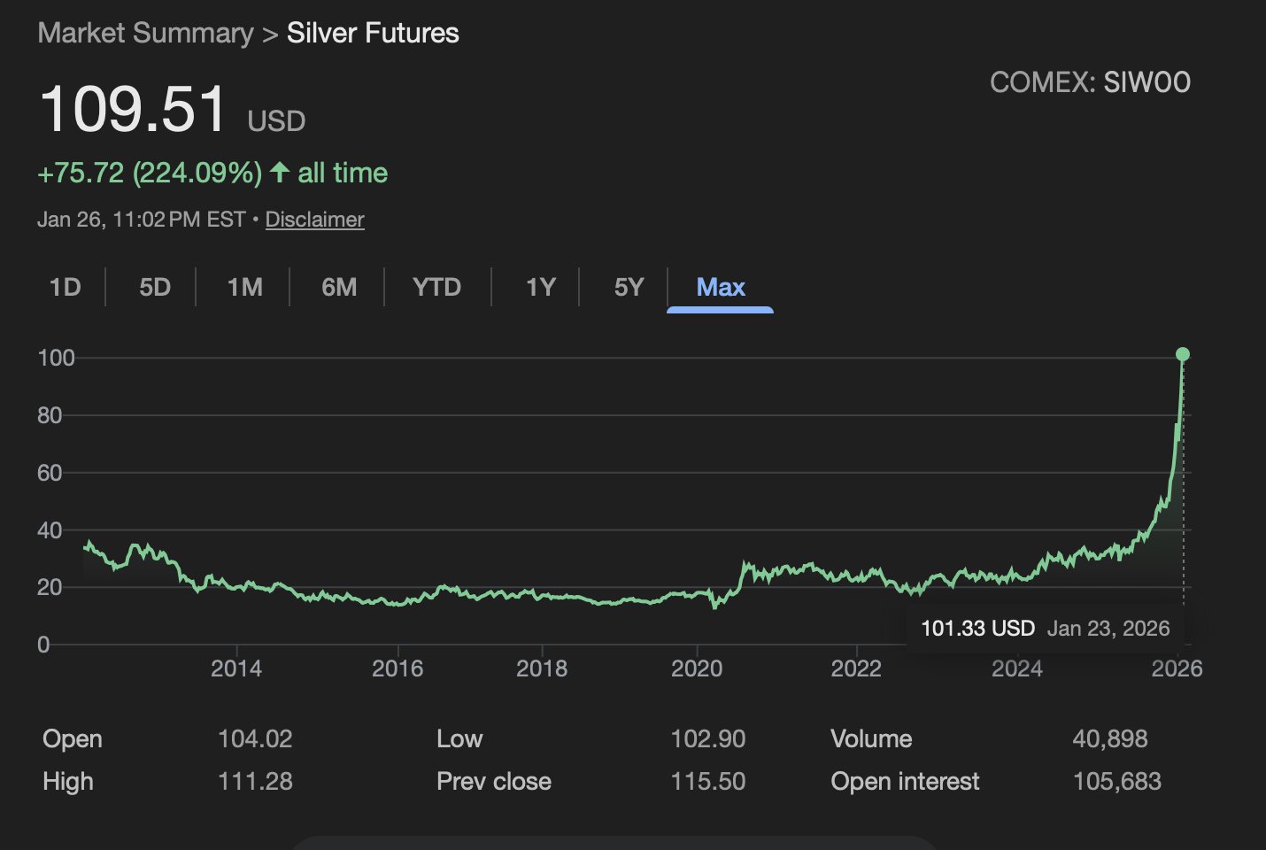 Silver today: $110.