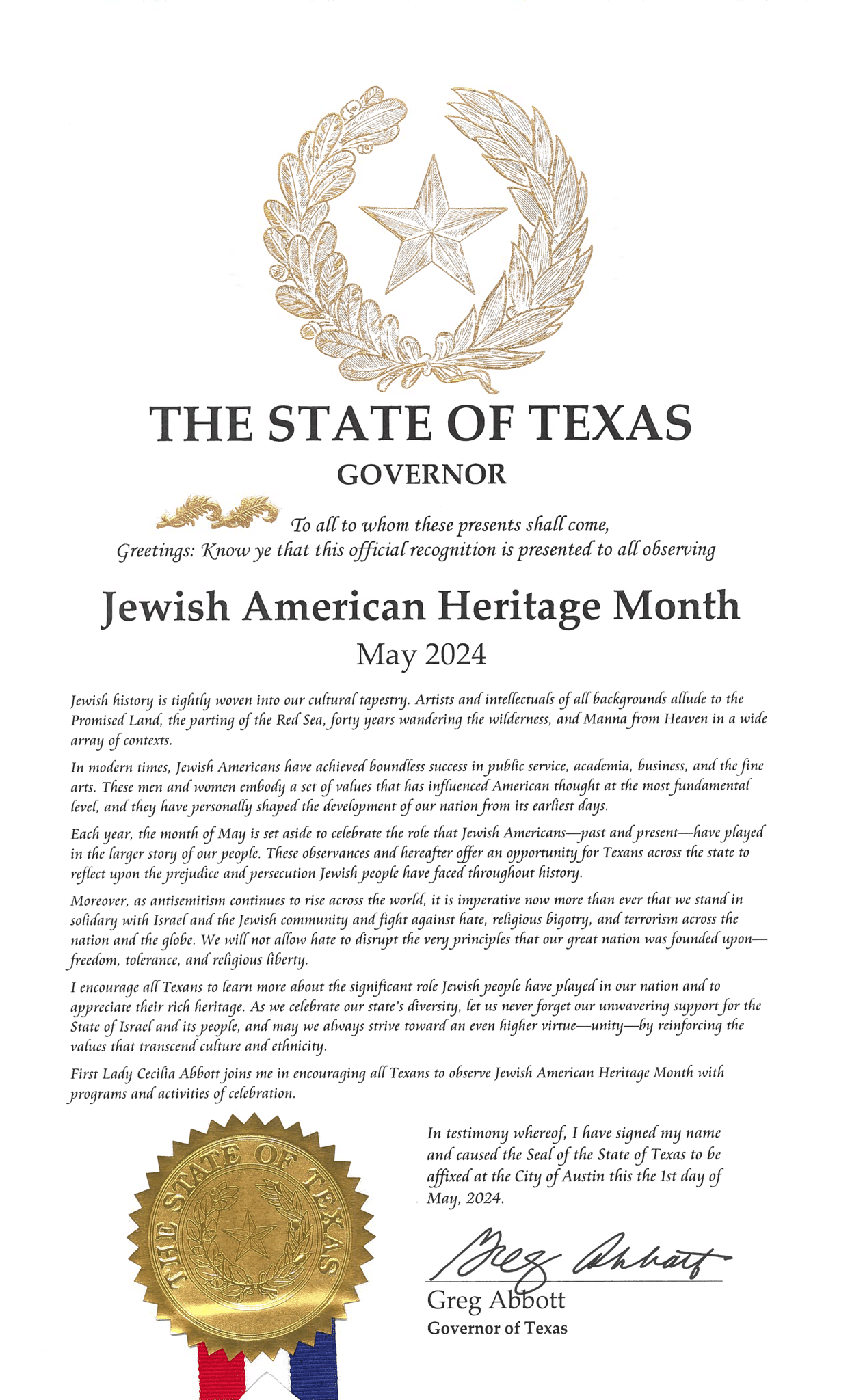 Proud to proclaim May as Jewish American Heritage Month in Texas.