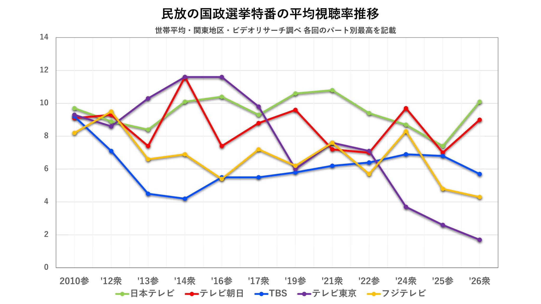 民放キー局の選挙特番 視聴率推移