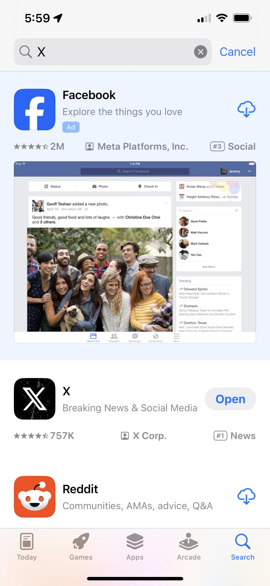 @elonmusk @Apple They are the worst. When you search for βxβ in the App Store Facebook pops up before this platform. There is no x in Facebookβ¦