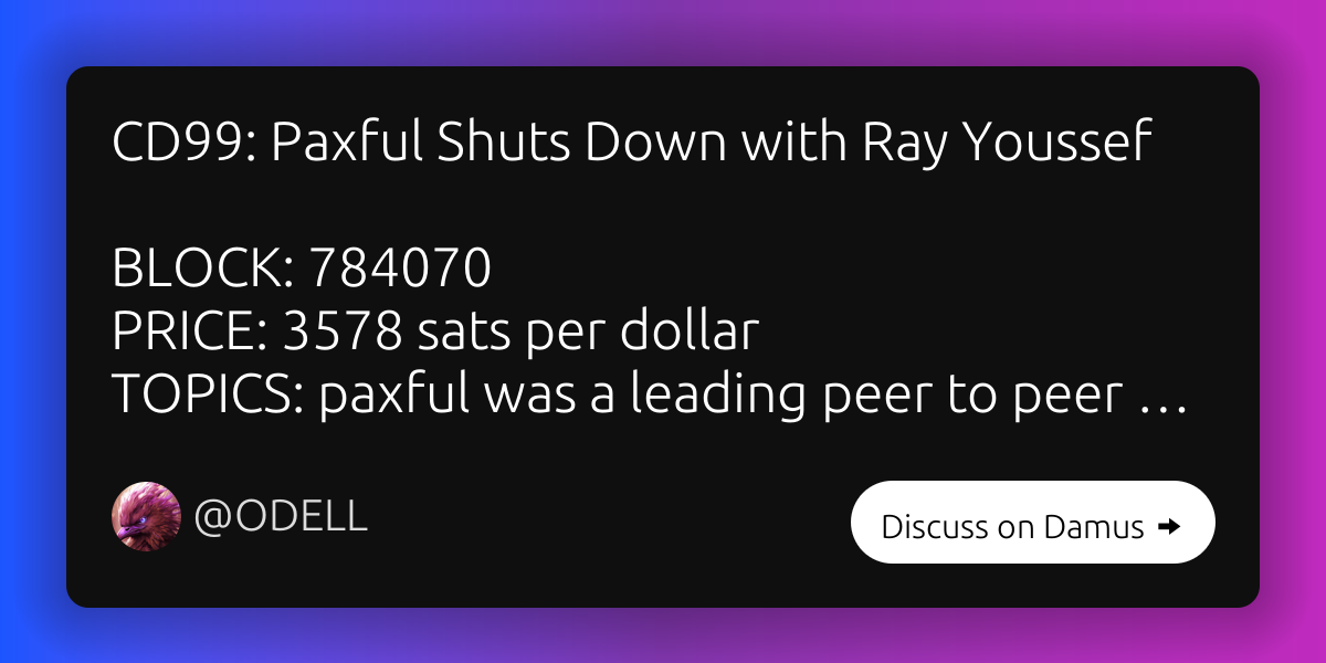 CD99: Paxful Shuts Down with Ray Youssef BLOCK: 784070 PRICE: 3