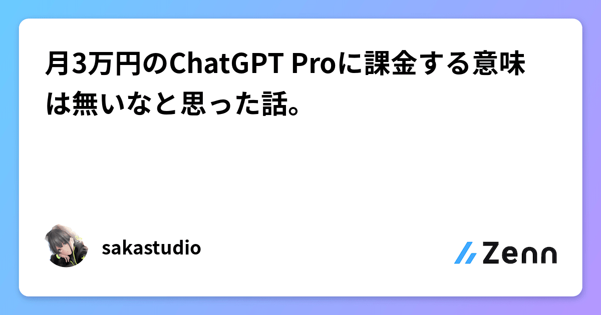 月3万円のChatGPT Proに課金する意味は無いなと思った話。|sakastudio