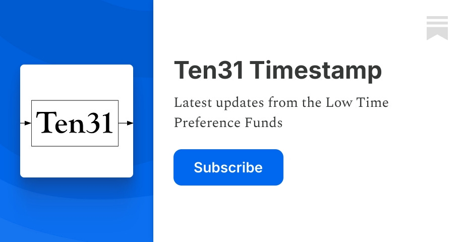 Latest updates from the Low Time Preference Funds. Click to read Ten31 Timestamp, a Substack publication with thousands of subscribers.