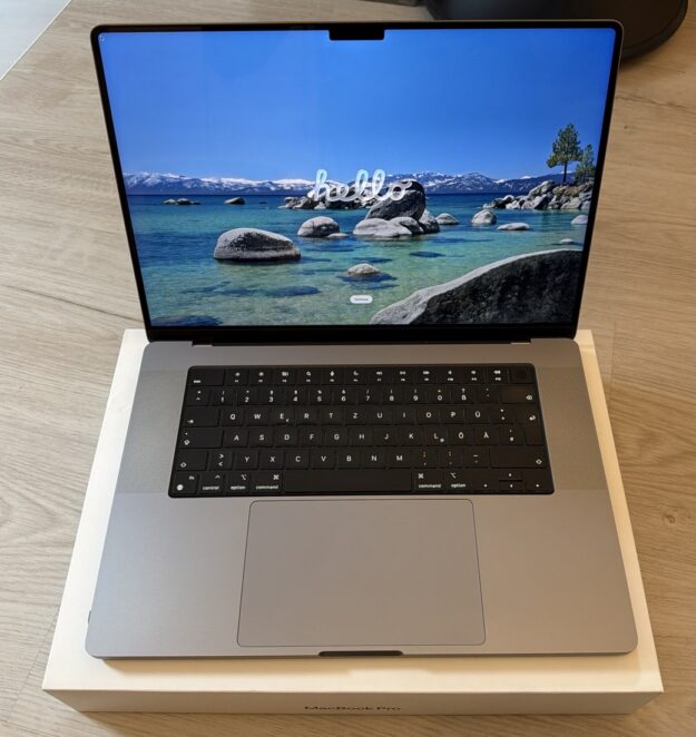 verkaufe mein Macbook Pro mit M1Pro Chip 512 GB SSD, 16 GB Ram, 16″ Display MacBook Pro M1Pro Originalverpackung Netzteil und Magsafe-Kabel ...