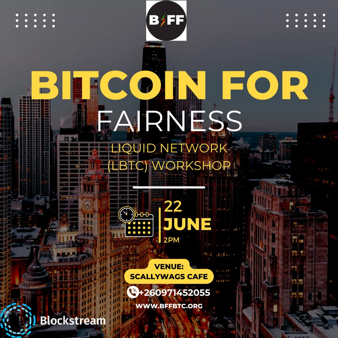 This week, Blockstream Local proudly supports Bitcoin Zambia, an initiative by Bitcoin For Fairness and @Anita, for their @Liquid Network worksho...