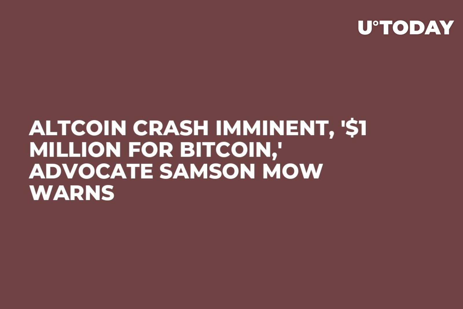 Altcoin Crash Imminent, '$1 Million for Bitcoin,' Advocate Samson Mow Warns - U.Today
