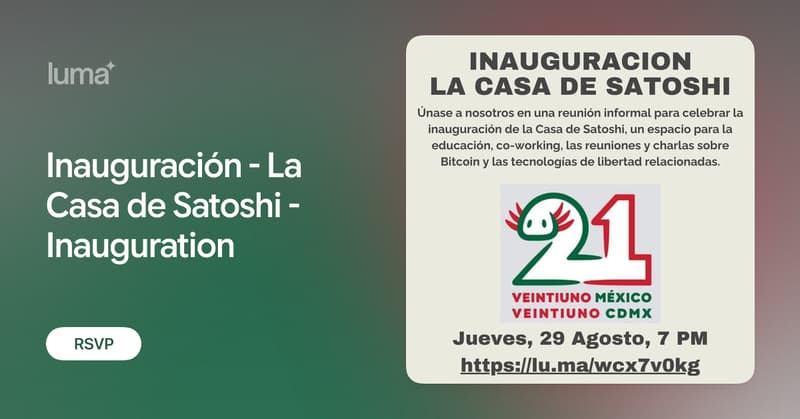 Los queremos invitar a la inauguración de La Casa de Satoshi en la CDMX.