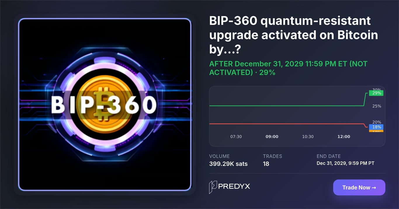 🚨 NEW PREDYX MARKET: #BIP360 quantum-resistant upgrade activated on #Bitcoin by... ?