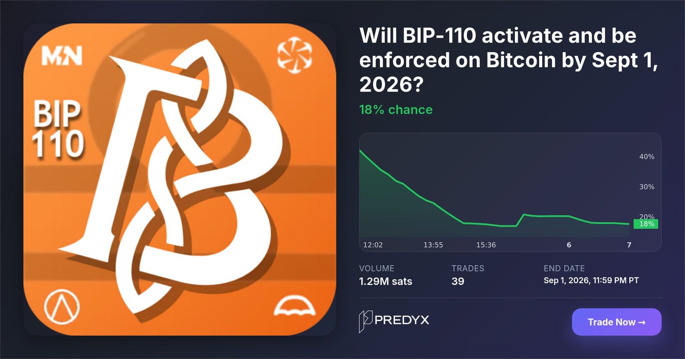 JUST IN: A new prediction market for BIP-110, the Pleb Activated Slop Fork, was just republished with millions in liquidity on @Predyx