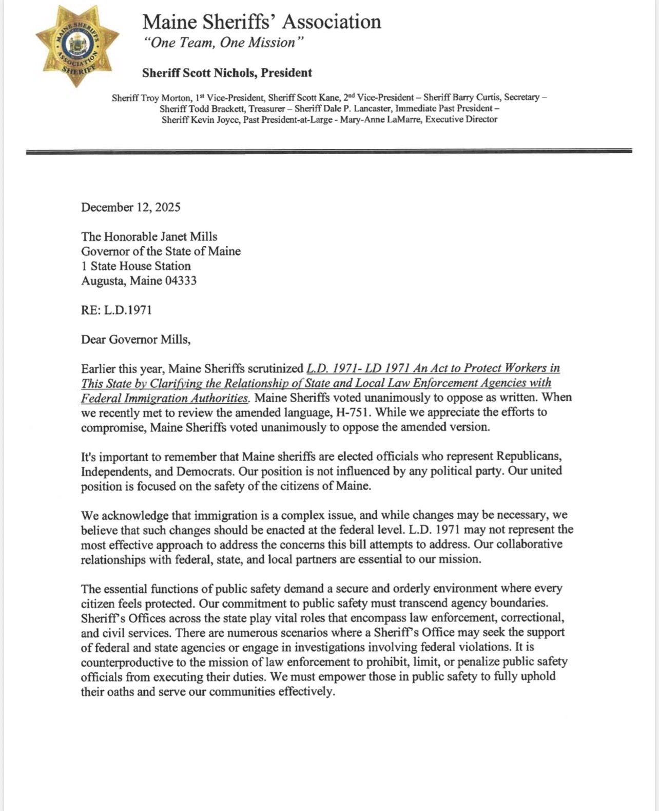 ⚡NEW: The Maine Sheriffs' Association releases a statement lambasting Governor Mills for allowing Maine's sanctuary state bill to become law: