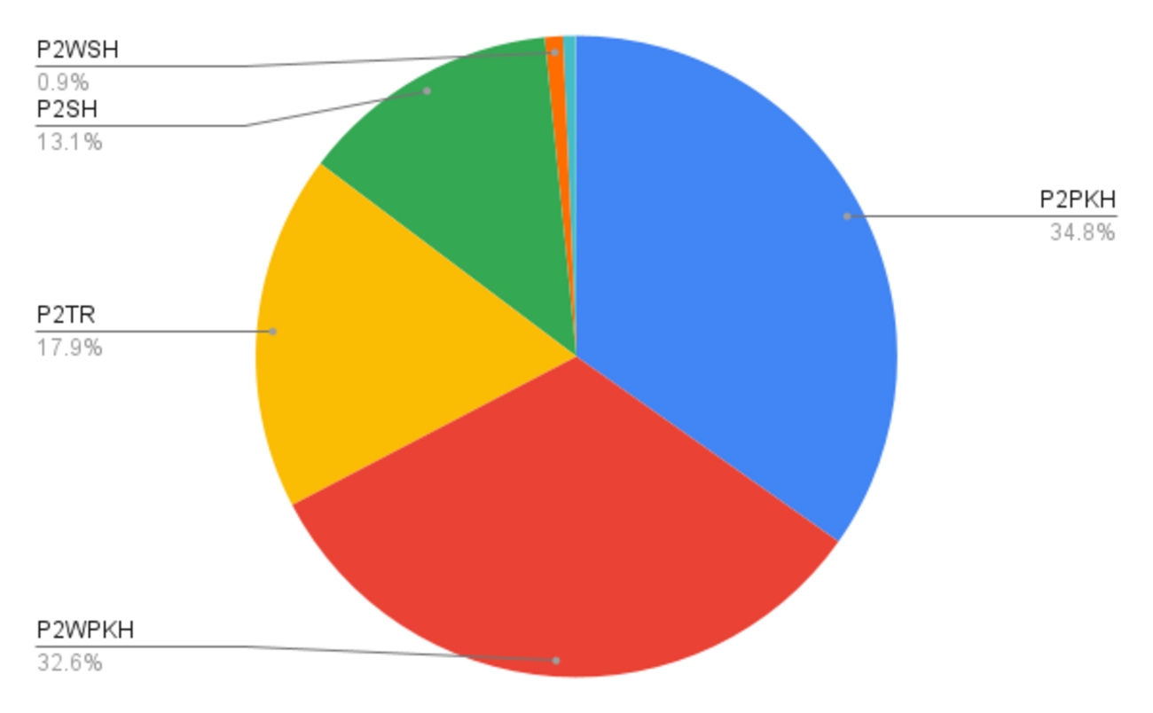 BitcoinのUTXOセットの内訳を調べてみた。Ordinals効果か意外とP2TRが多い。