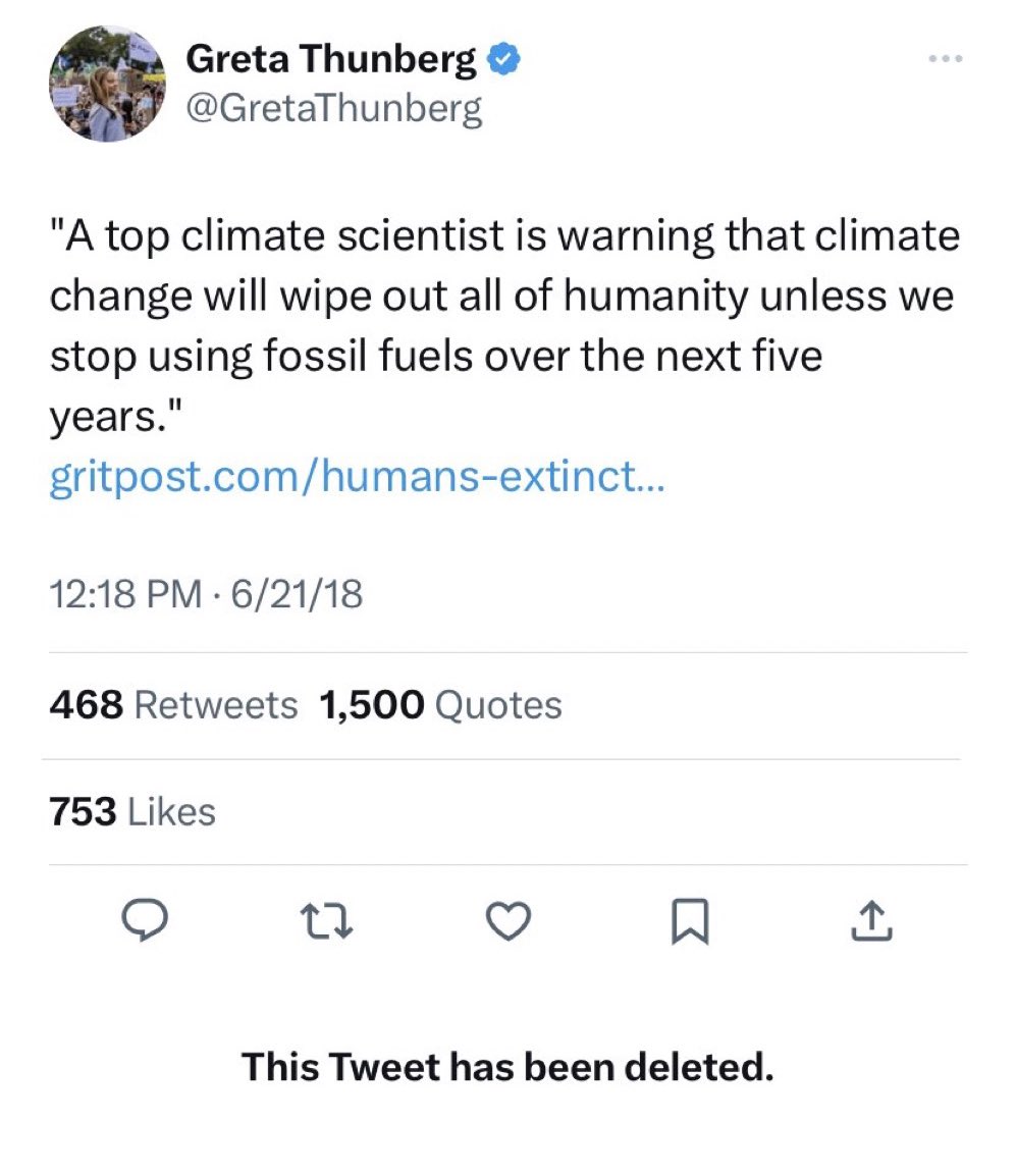 ClownWorld 2 years ago X (formerly Twitter)End Wokeness (@EndWokeness) on XHey @GretaThunberg why did you delete this tweet?