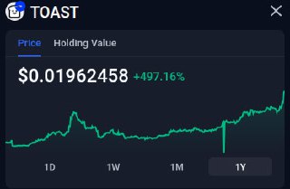 Y/day, when I generated the above, rabby tells me last 12 months for our Toasty Toast = 497.16%