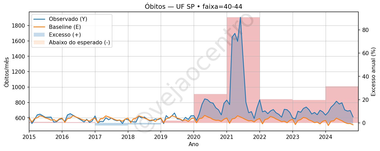 A faixa 40-44 tem experimentado excessos de óbito sustentados após a psyop covidiana como um todo 💉 Enquanto paulistas, mineiros, paranaenses ...