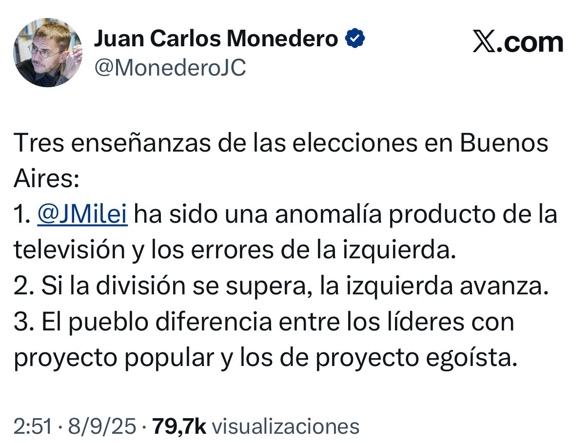 Supongo que los mismos que decían que los resultados de unas elecciones PROVINCIALES certificaban el fracaso absoluto del proyecto de reformas de Milei ahora nos dirán que los resultados de unas elecciones NACIONALES no avalan su éxito.