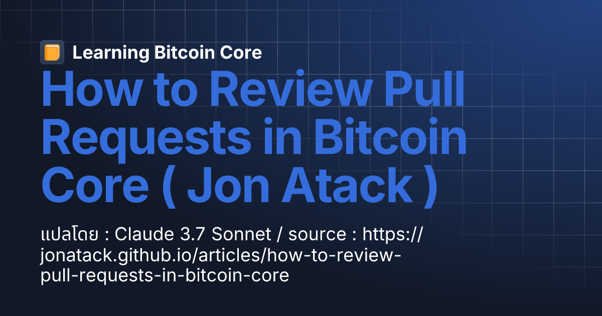 satuser 9 months ago How to Review Pull Requests in Bitcoin Core ( Jon Atack ) | Learning Bitcoin Coreแปลโดย : Claude 3.7 Sonnet / source : https://jonatack.github.io/articles/how-to-review-pull-requests-in-bitcoin-core ผู้ทบทวน