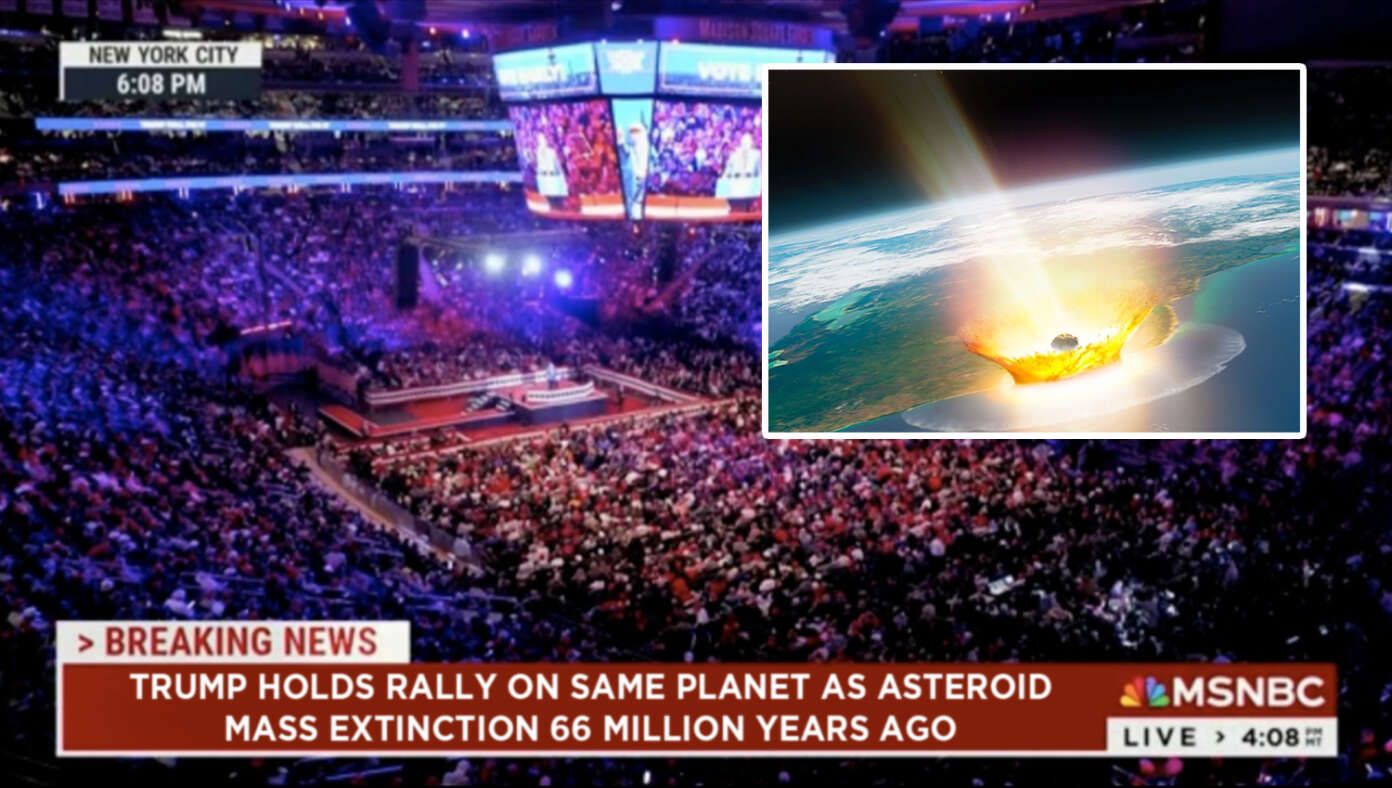 npub179r7...986k 1 year ago MSNBC Condemns Trump For Holding Rally On Planet Earth Where 66 Million Years Ago An Asteroid Caused Mass Extinction https://t.co/lizeQ02q9i X (formerly Twitter)The Babylon Bee (@TheBabylonBee) on XMSNBC Condemns Trump For Holding Rally On Planet Earth Where 66 Million Years Ago An Asteroid Caused Mass Extinction https://t.co/lizeQ02q9i