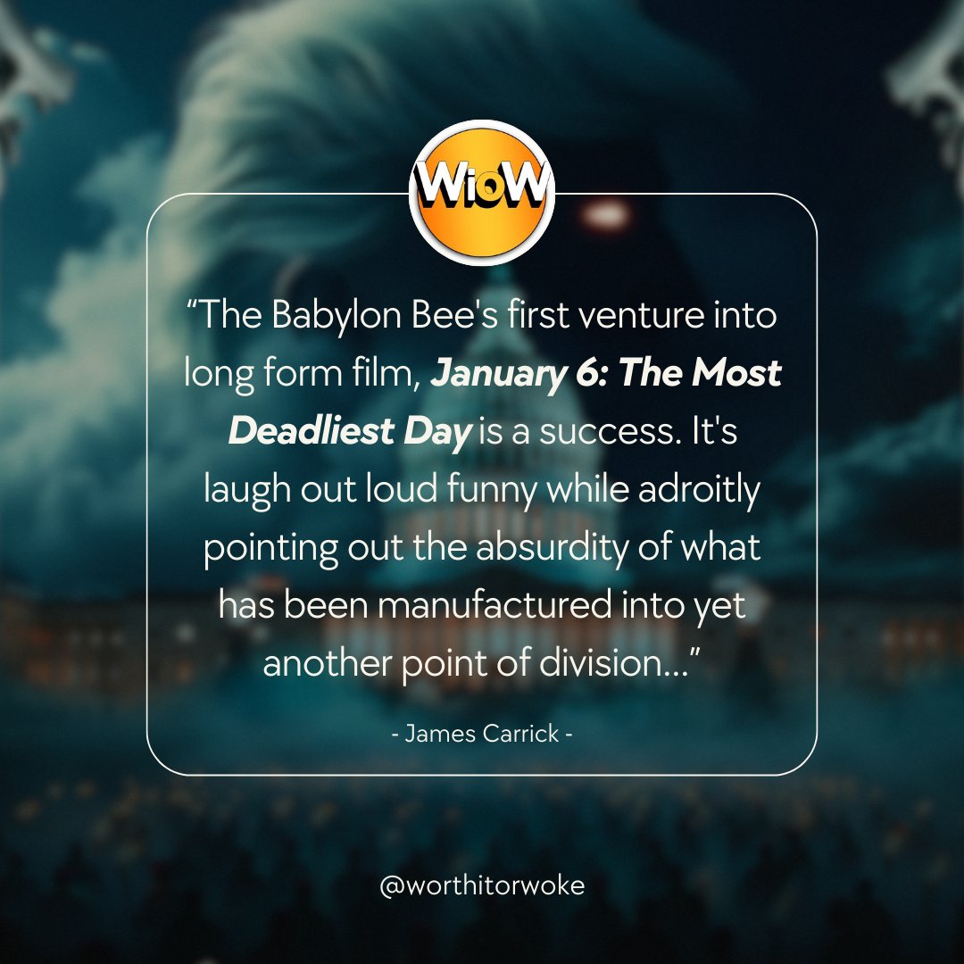 npub179r7...986k 1 year ago The critics agree— our movie will not be the worst thing you've ever watched. The Babylon BeeBabylon Bee | Fake News You Can TrustWatch January 6: The Most Deadliest Day 10/11 X (formerly Twitter)The Babylon Bee (@TheBabylonBee) on XThe critics agree— our movie will not be the worst thing you've ever watched. https://t.co/WF2zCAH17L