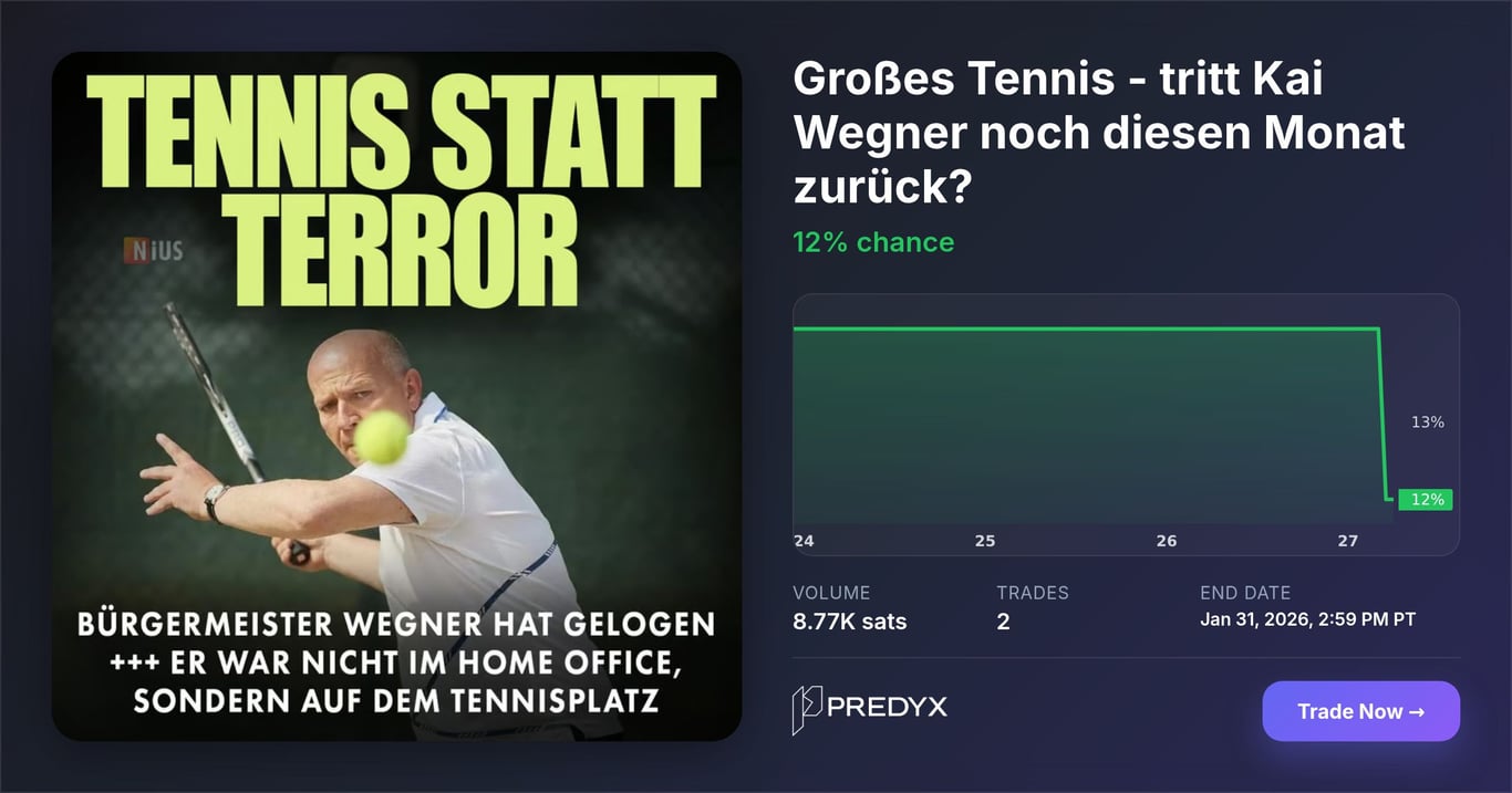 This market will resolve to "Yes" if Kai Wegner officially resigns from his position as Regierender Bürgermeister of Berlin by 23:59 UTC on Januar...
