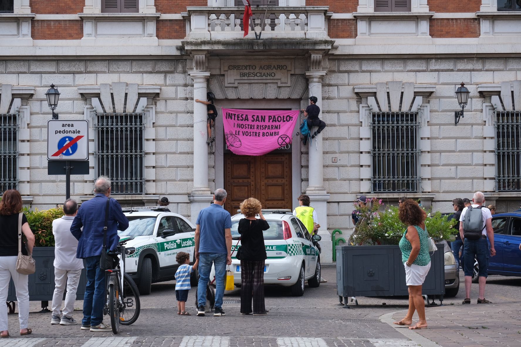 Brescia, 21/10/2025 – La Questura di Brescia notifica cinque fogli di via e avvisi orali ad attiviste di Extinction Rebellion per aver partecipato ad una manifestazione di fronte Intesa Sanpaolo. “Espulsi dalla città ed etichettati come socialmente pericolosi per aver semplicemente esposto dei cartelli o letto al megafono in una piazza pedonale.…
