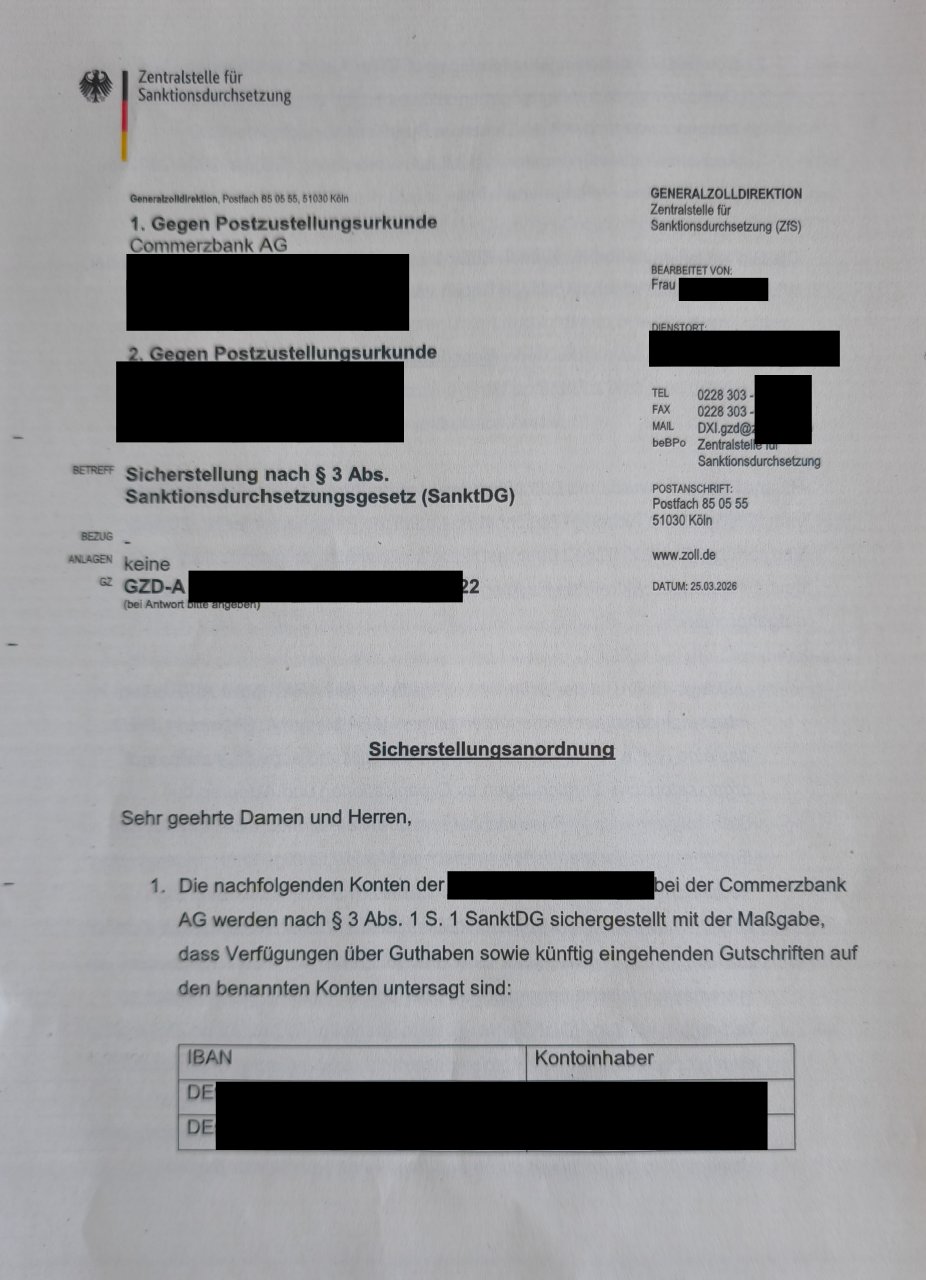 As of yesterday, German authorities seized the bank accounts of my wife.