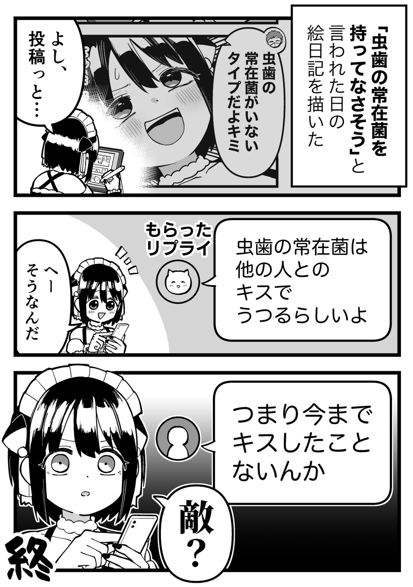 自分も歯科健診で1度も虫歯判定もらったことなかったけど、虫歯持ちとチュッチュして虫歯菌移されて虫歯になりかけた。