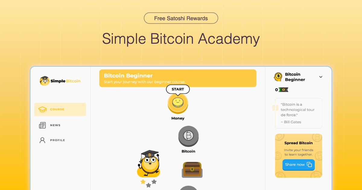 Explore Simple Bitcoin App, your guide to Bitcoin and finance. Enjoy bite-sized lessons, quizzes, news updates, and a chance to win real Bitcoin. S...