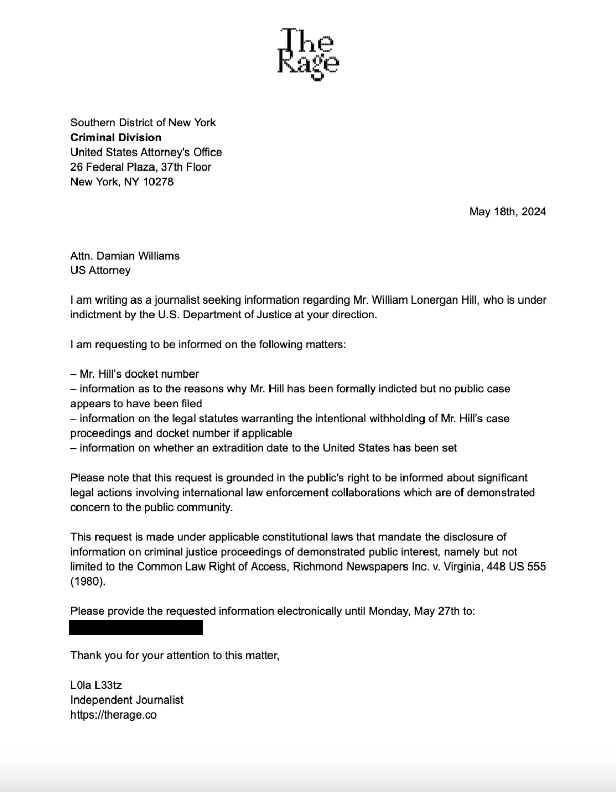 The Rage sends the feds some questions (you've already seen this too and I still don't know how to link to notes)