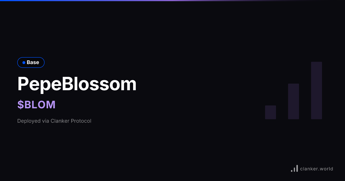 PepeBlossom ($BLOM) on Base. Deployed using Bankr... View chart, trade, and earn fees on Clanker.
