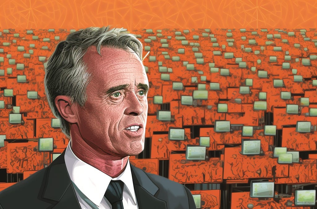 no, he's narratively recalling camelot and invoking the "better days" rhetoric, just repackaged as blue dog fodder. i think rfkjr is an important thinker, and an interesting conversationalist, and would be a fascinating political candidate. his role is to litigate the off-rails narratives of the last 2 decades and appeal to "better angels" - i do not believe he's willingly or seriously running for president.