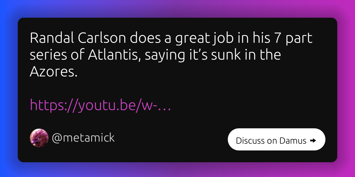 Randal Carlson does a great job in his 7 part series of Atlantis
