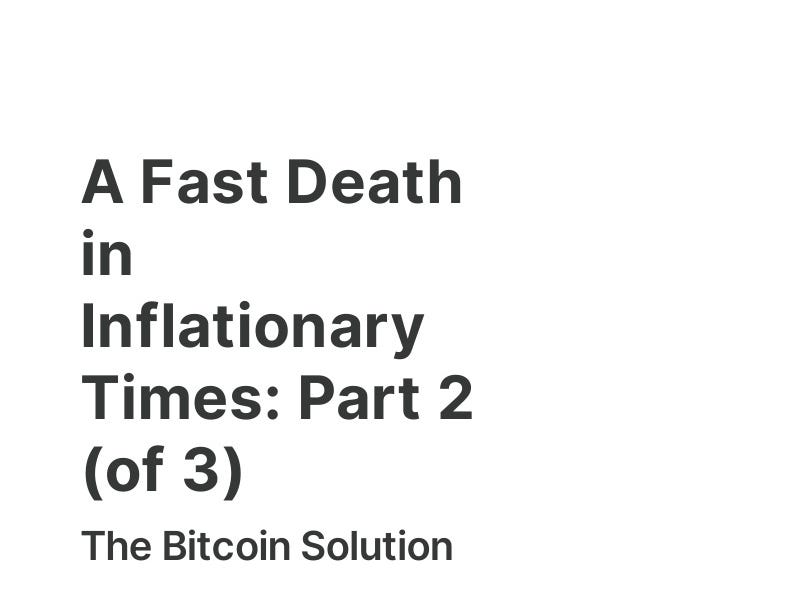 zach npub1vjlp9n3eyfs0lr7p750k0p2jwn7edj4832ws6qyuxqnaruuxgglqggkjsg 1 year ago A Fast Death in Inflationary Times: Part 2 (of 3)The Bitcoin Solution